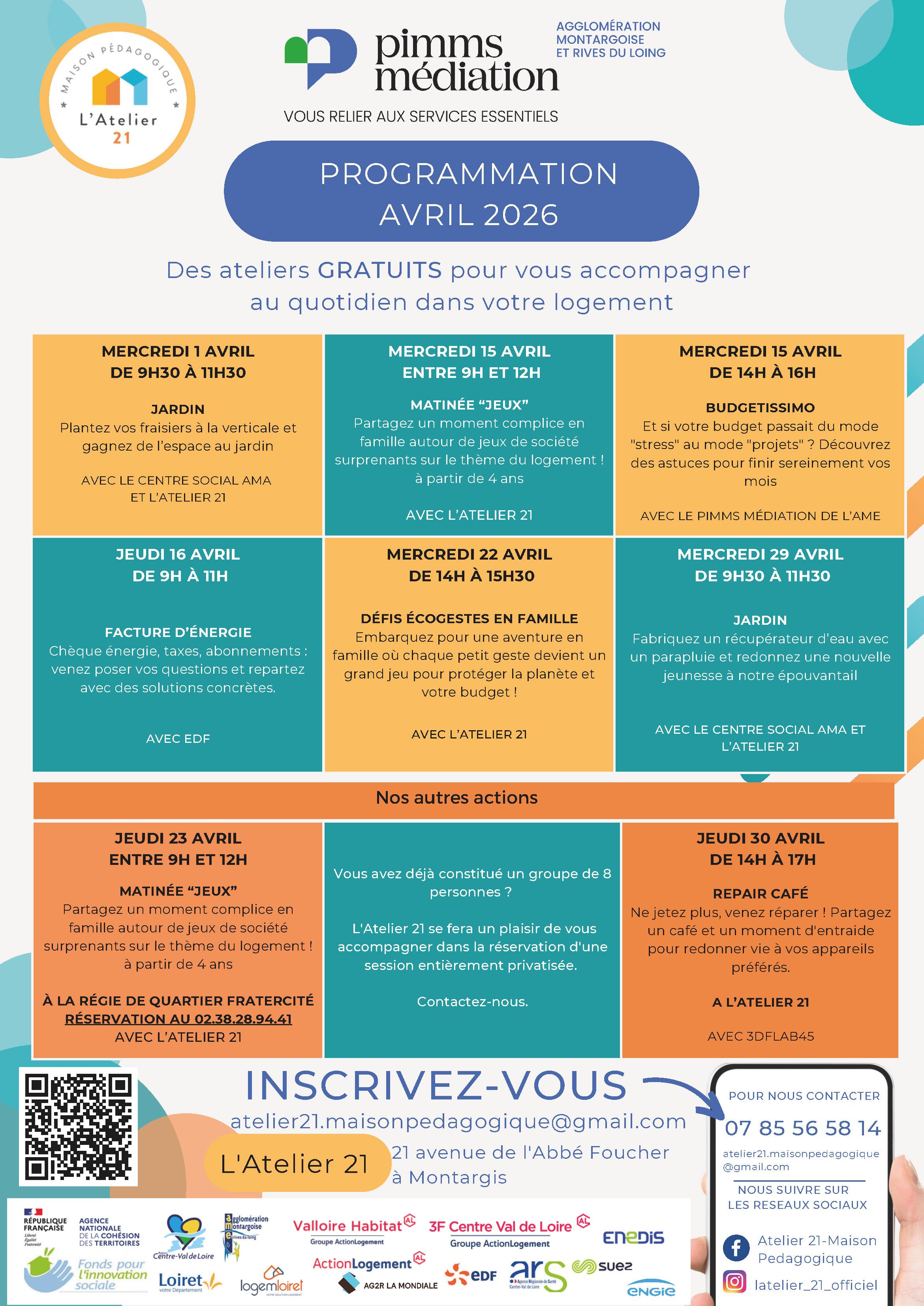 L’Atelier 21 vous propose des ateliers gratuits, ouverts à toutes et à tous, pour vous accompagner au quotidien dans votre logement.
