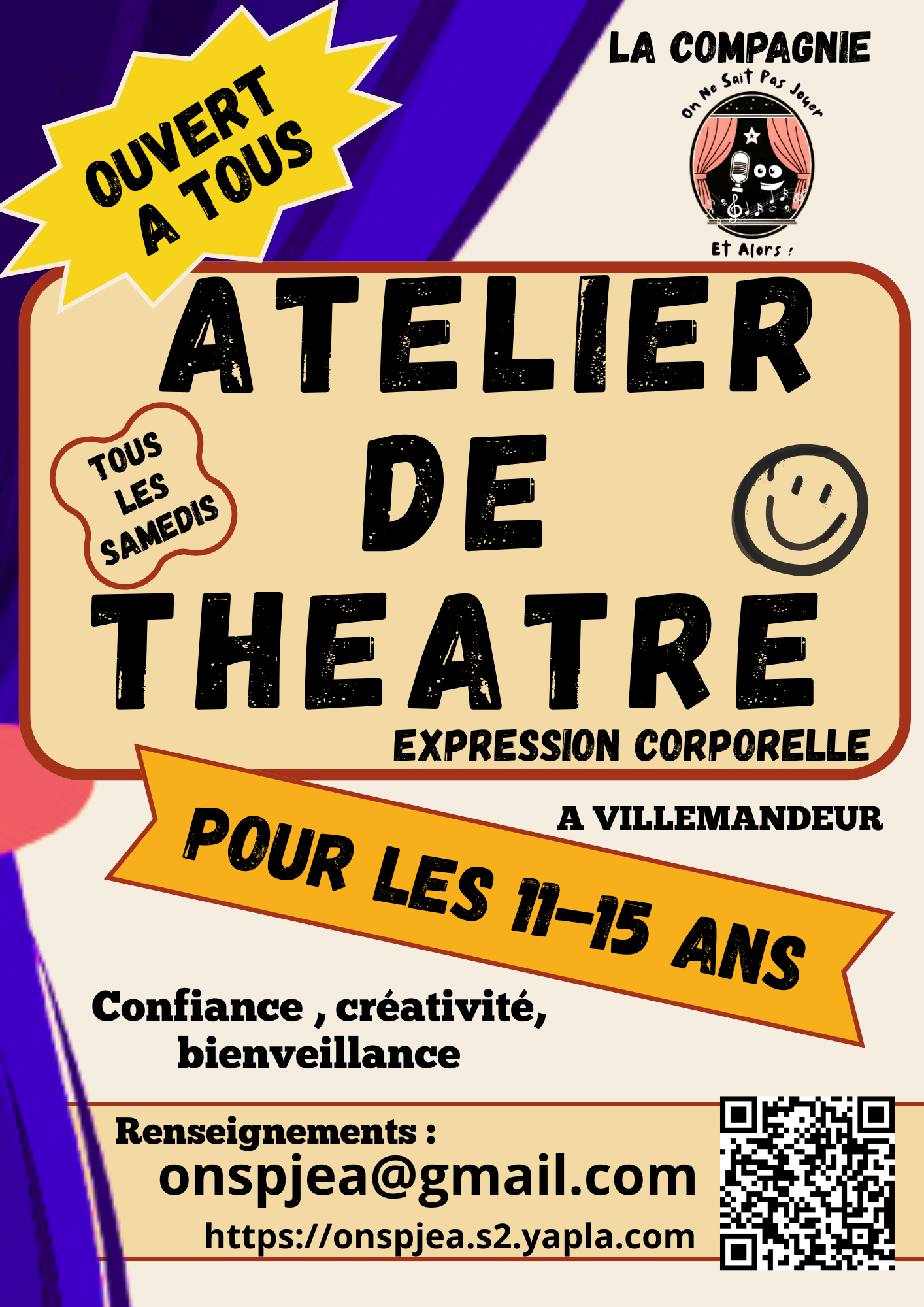 Un rendez-vous idéal pour s’amuser, progresser et s’affirmer tout en découvrant le plaisir du théâtre.