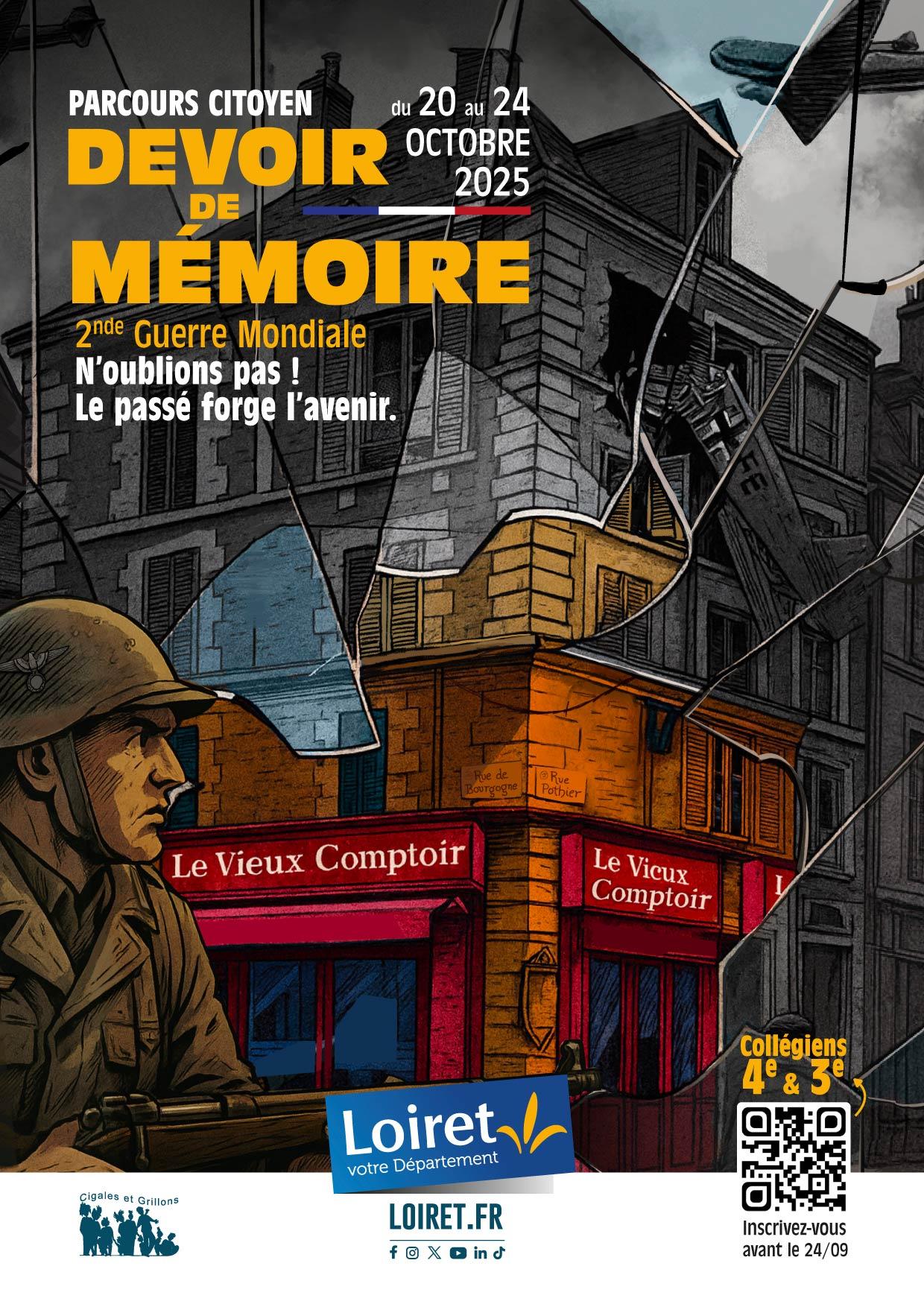 Du 20 au 24 octobre 2025, pendant les vacances d’automne, le Département organise la 4e édition du parcours citoyen sur le thème « Devoir de mémoire » à destination des collégiens. Durant ces quelques jours, les jeunes seront en immersion historique sur les traces de faits marquants de la seconde Guerre Mondiale.