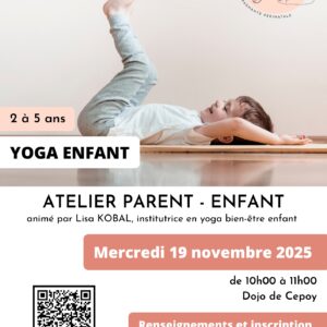 Atelier parent-enfant de yoga ! Le Relais Petite Enfance vous invite à un moment d’éveil, d’expérimentation et de partage autour du yoga, animé par Lisa Kobal, institutrice en yoga bien-être pour enfants Pour les enfants de 2 à 5 ansMercredi 19 novembre de 10h à 11hÀ Cepoy Un joli moment de complicité à vivre en…