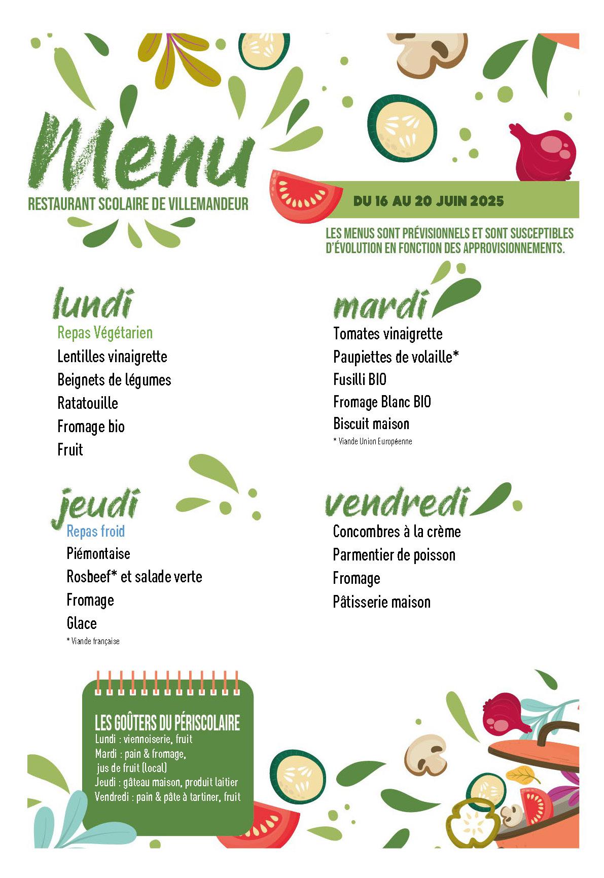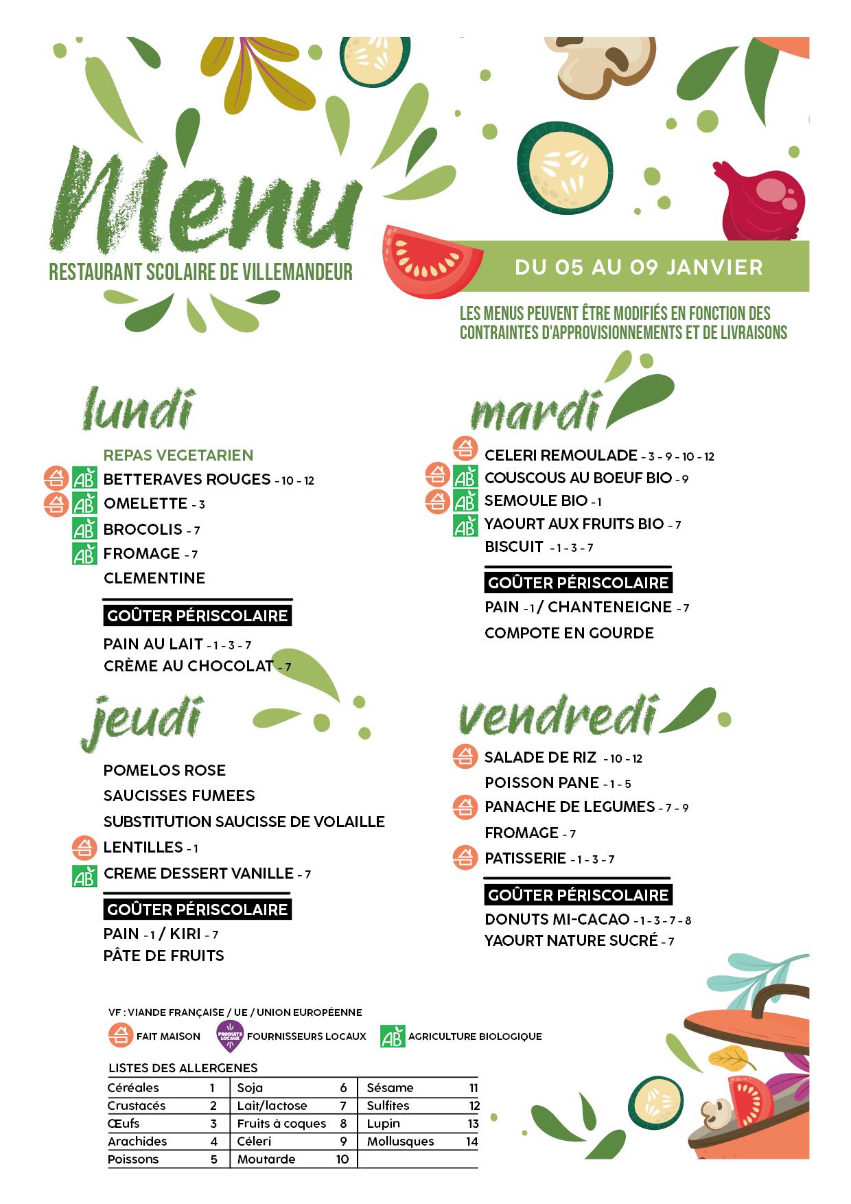Nous utilisons, en fonction des saisons et des possibilités, des produits locaux, régionaux et au maximum français lorsque l’approvisionnement local ne nous permet pas de satisfaire aux quantités voulues. Les repas sont