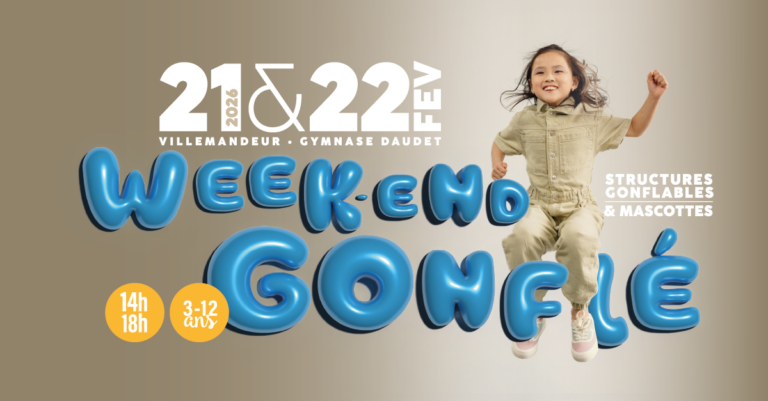 Week-end gonflé Un événement ludique et festif, dédié aux enfants et aux familles, arrive pendant les vacances scolaires Les enfants de 3 à 12 ans pourront s’amuser dans de nombreuses structures gonflables et rencontrer leurs mascottes préférées Samedi 21 et dimanche 22 février De 14h à 18h Tarifs : ➡️ 7 € par enfant sur … Lire la suite de Week-end gonflé